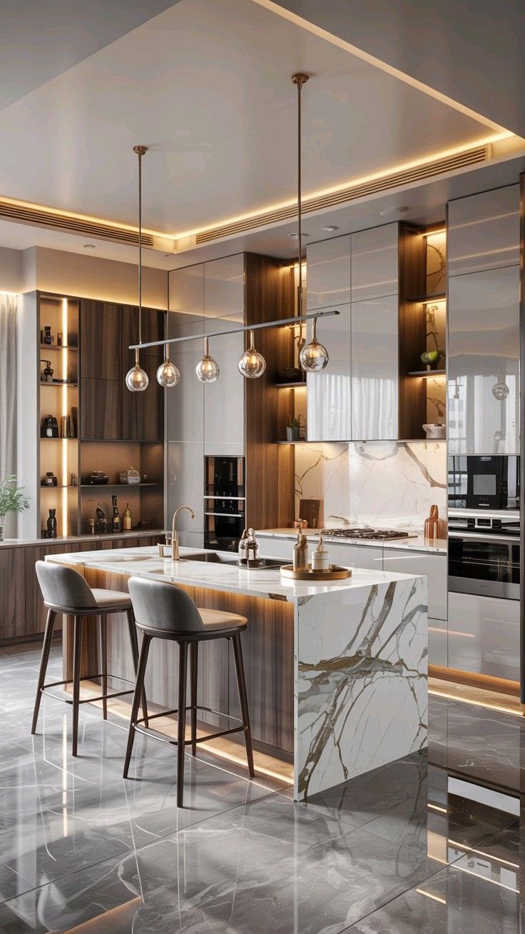 Designed for larger kitchen spaces, the island format allows free movement, dual work zones, and enhanced storage — all while promoting interaction and a modern open look.